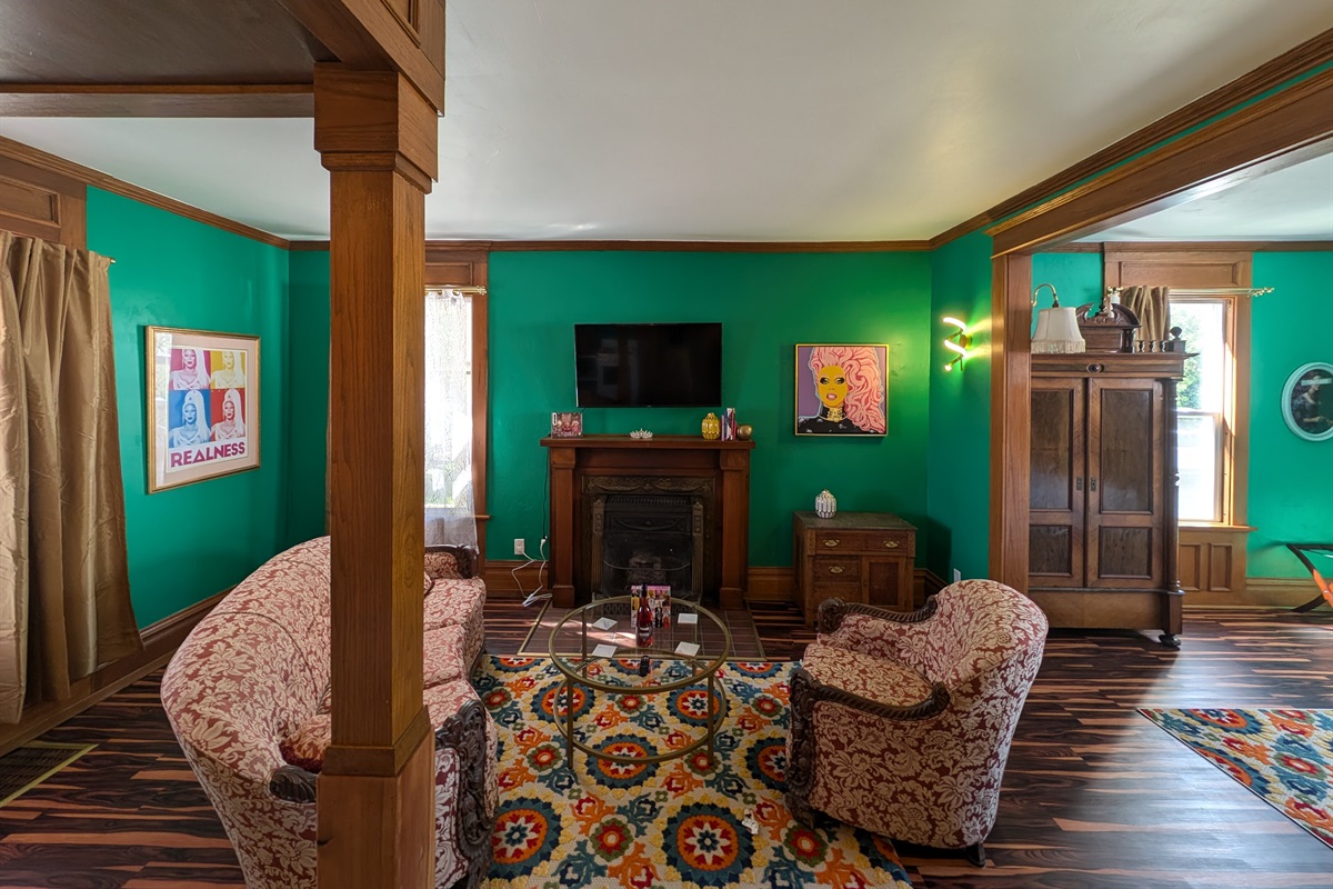 Vibrant King bed Suite! RuPaul inspired stylings. Glamorous King bed Suite! RuPaul inspired stylings.